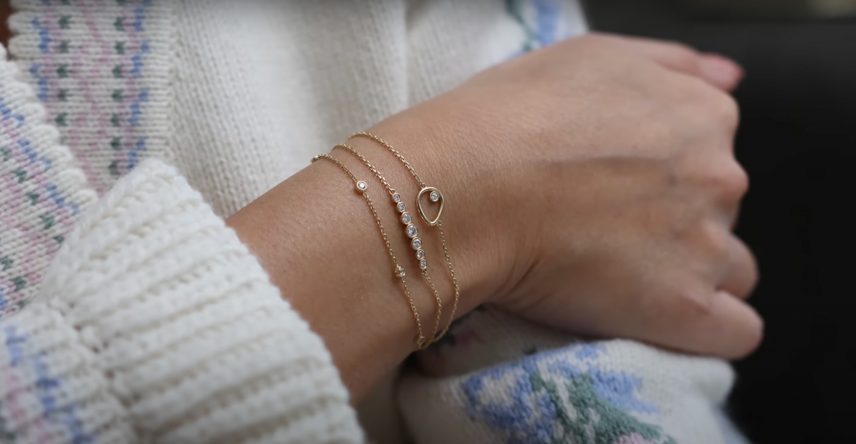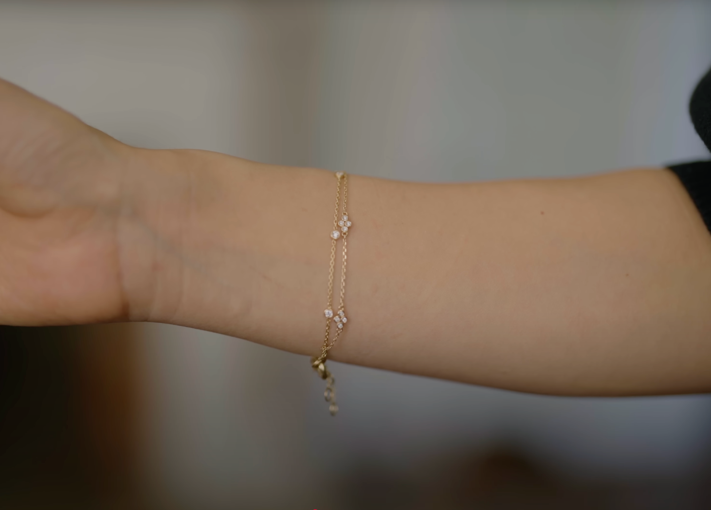 Delicate glow at its finest. 5 diamonds lighting up your arm for any occasion. Try pairing her with the Solo necklace for the ultimate refined look. Adjustable length (with clasp) at 6, 6.5, 7 or 7.5 inch or 15.5, 16.5, 17.5 or 17.8 cm.