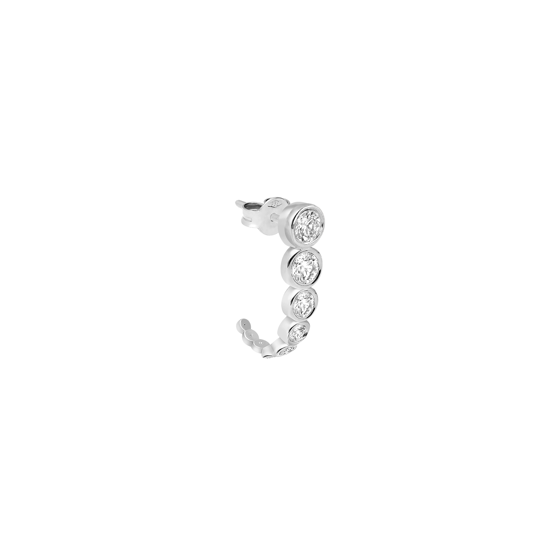 Ono is perfect for all fans of round hoops who seek something different and more special. Ono's diamond set circle features 15 diamonds set in a playful manner for a unique look that will make you stand out from the crowd. Ono can be worn from the front or the back.