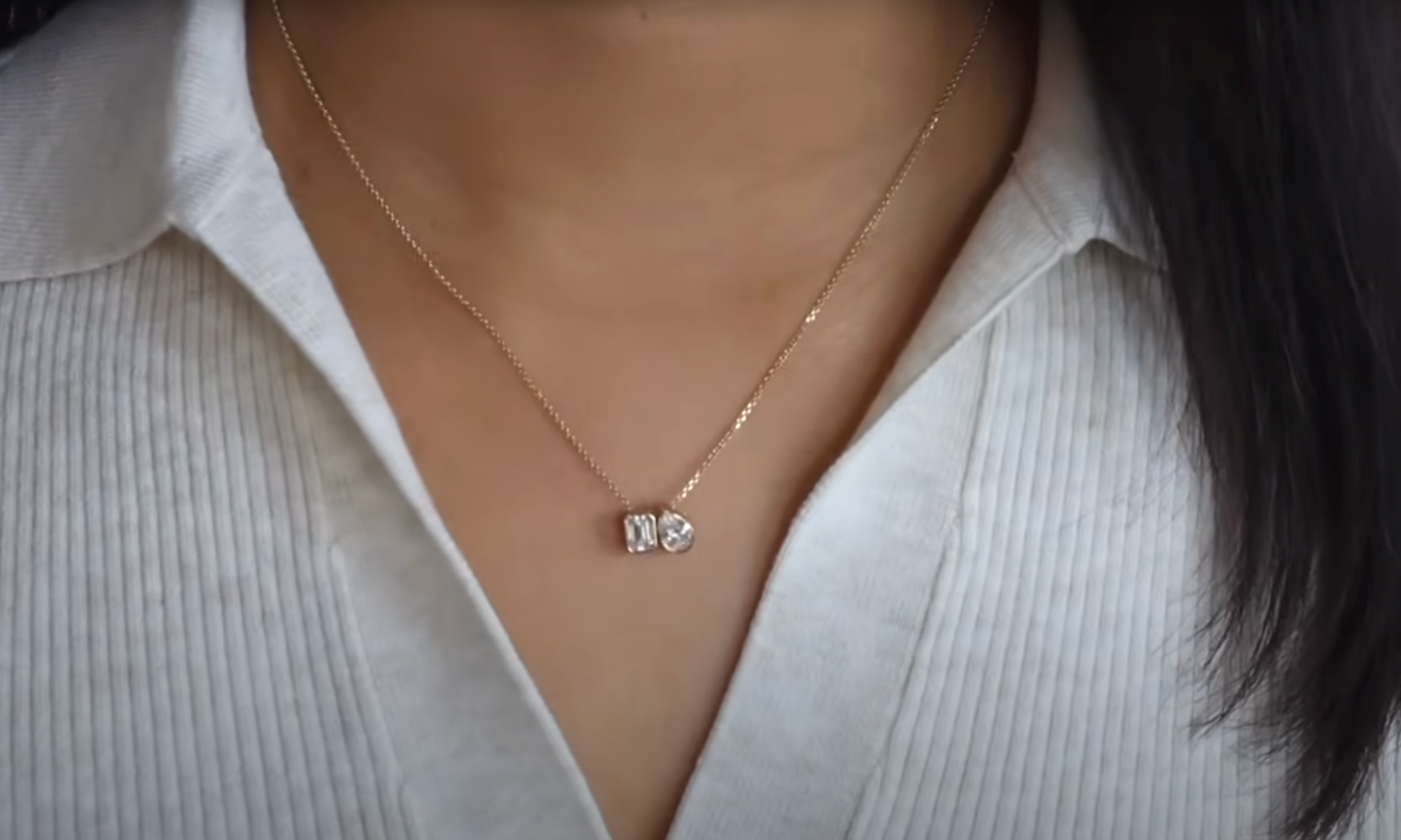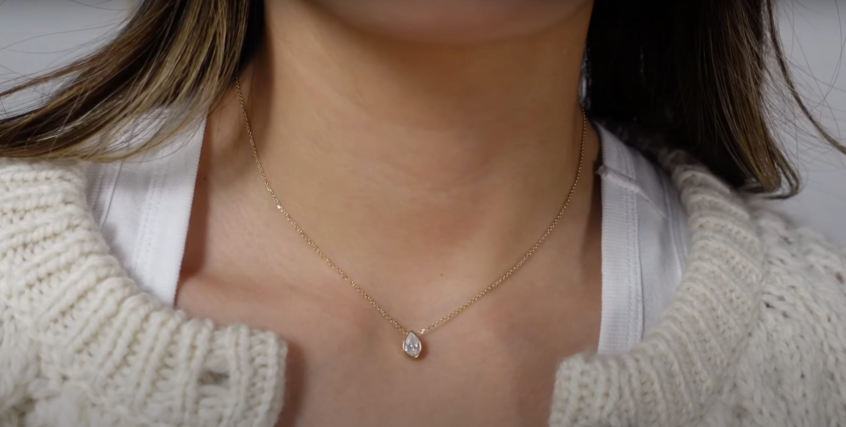 Ava is a pear shaped necklace with no less than 0.50ct of our sustainable pear diamond cut. You can wear Ava vertically for a classic look or horizontally for a modern twist. The Ava pairs well with our Leah earrings for a complete pear cut diamond look.