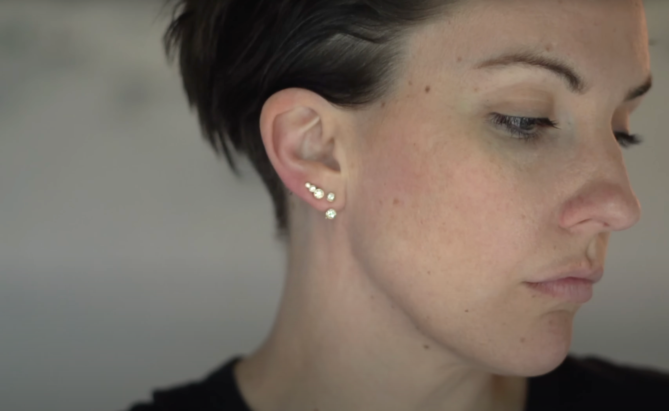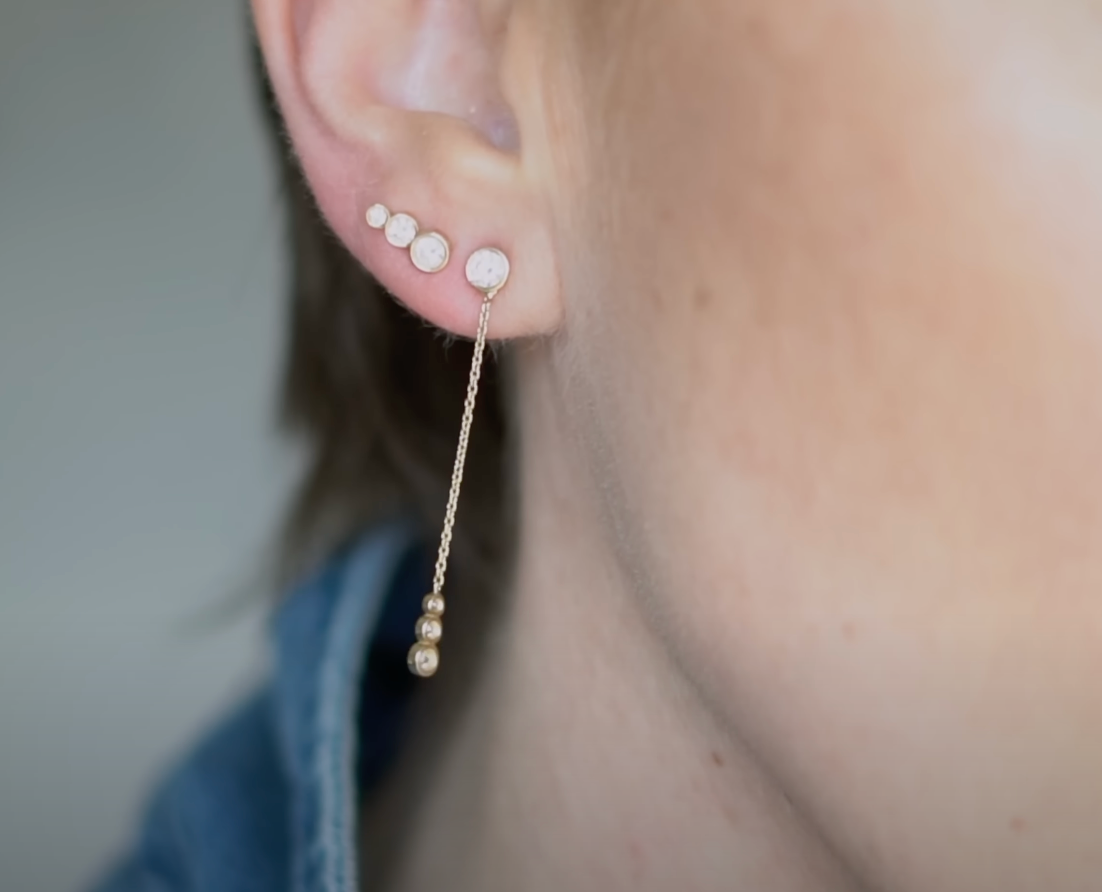 Gia is part of our Mini Stackers, a collection of tiny piercings perfect for stacking high up the ear lobe or for anyone looking for a more subtle sparkle. Gia can be turned around 360° so you can play around with a different look.