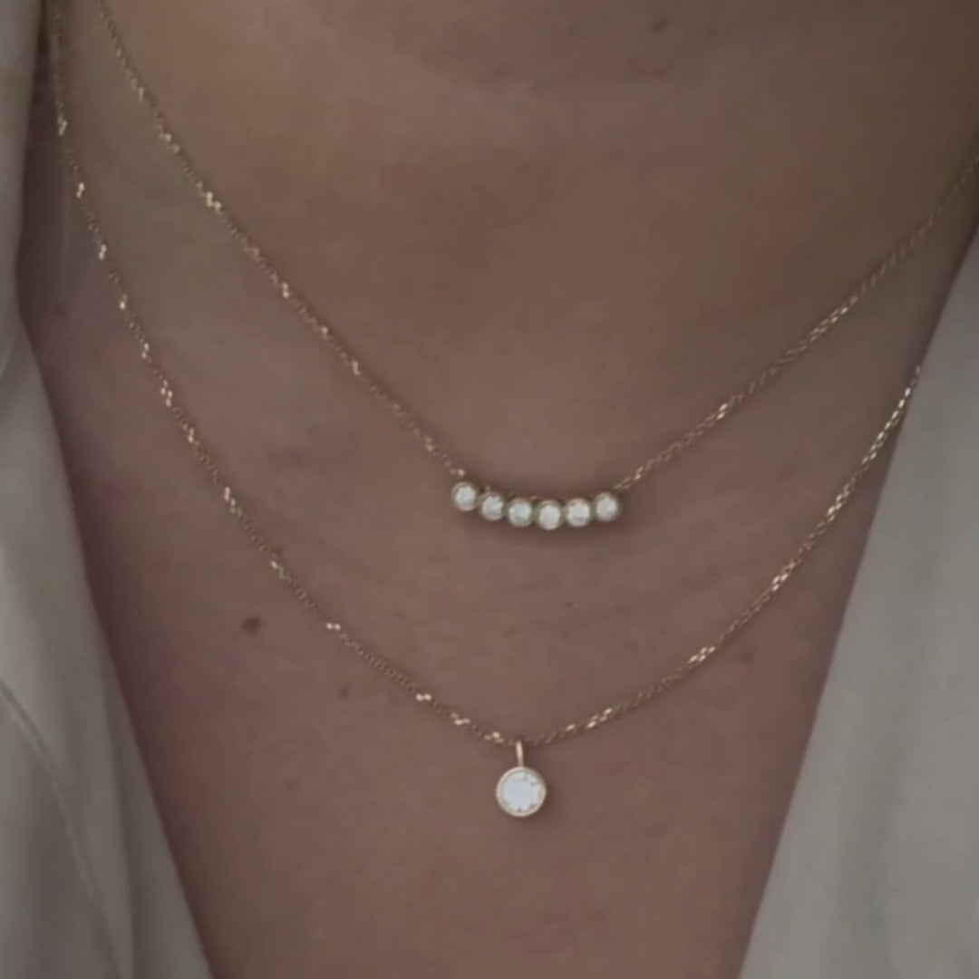 Lena follows a trail of six diamonds set in gold. She is our #1 all time bestseller and can be paired up with many earrings of our collection and also looks great in any necklace stack. She became the classic idyl piece every true fan owns.