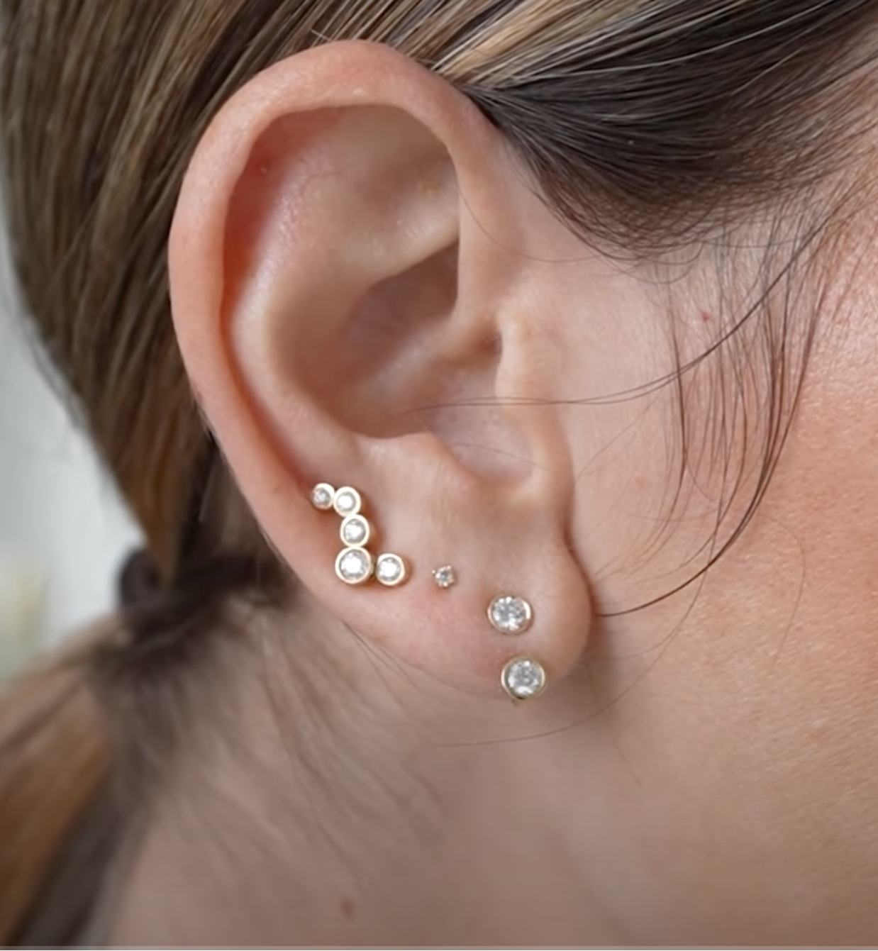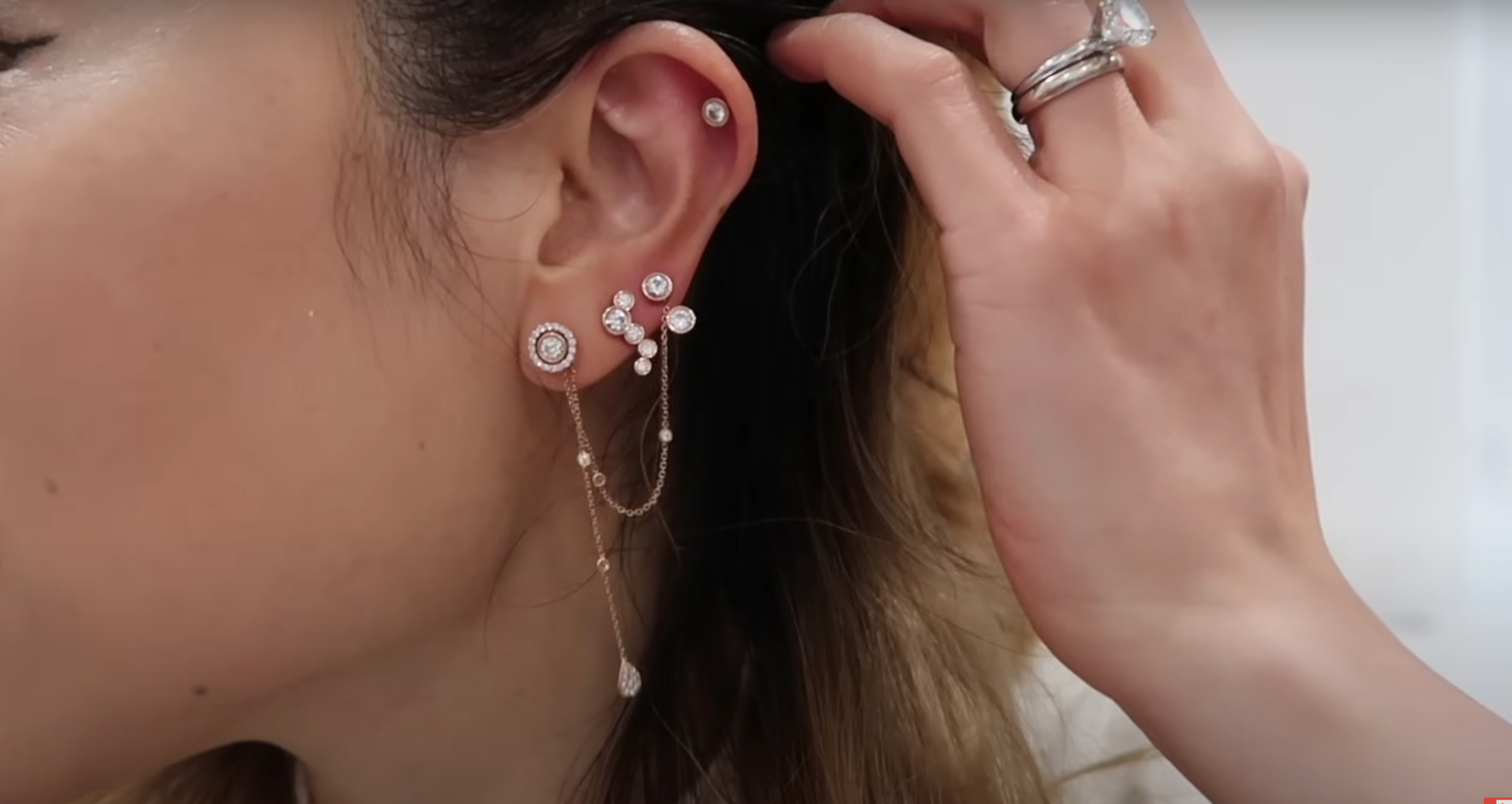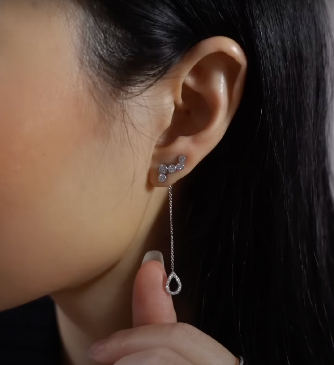 Liv caters to all the ear climber fans out there. She follows a trail of four diamonds, which can be turned 360°, depending on the look you're going for that day.